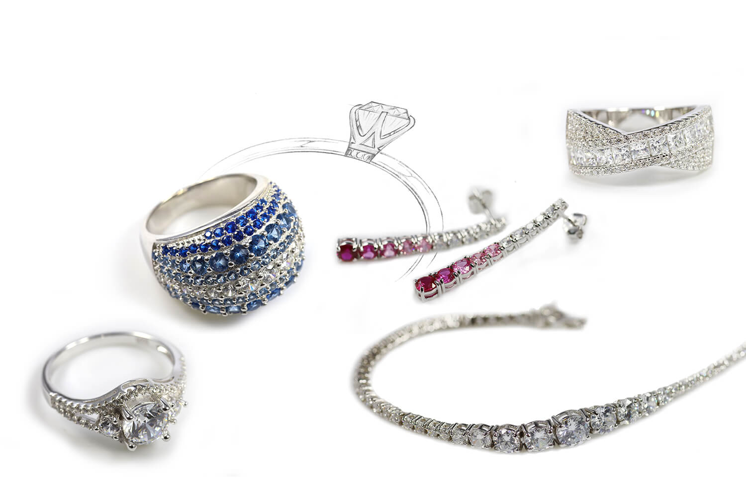 We develop and produce jewellery with a high quality standard and requirement. Our main focus and concentration is hearby the produciton of silver and fashion jewellery as well as also gold jewellery. For our silver and gold jewellery we mainly use cubic zirkonia stones, pearls, semi-precious stones and diamonts. For fashion jewellery we additonally use crystal or Swarovski Elements.